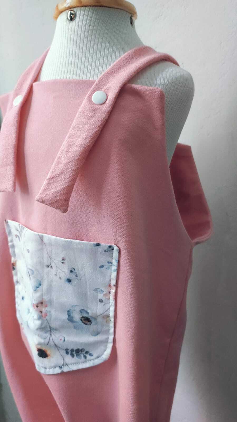A jardineira Janis é produzida em malha 100% algodão, que permite que a pela da sua criança respire, proporcionando maior conforto.
